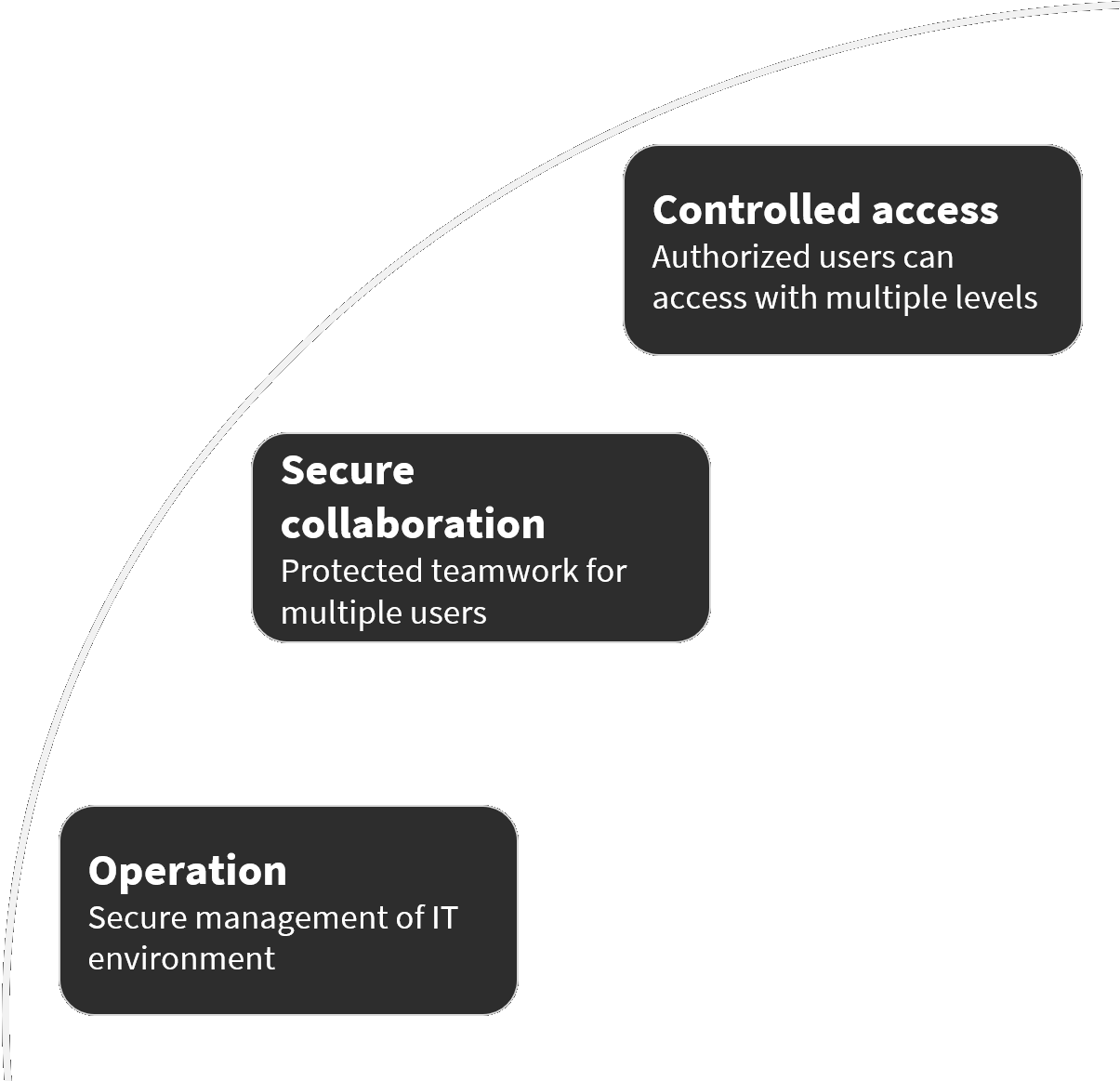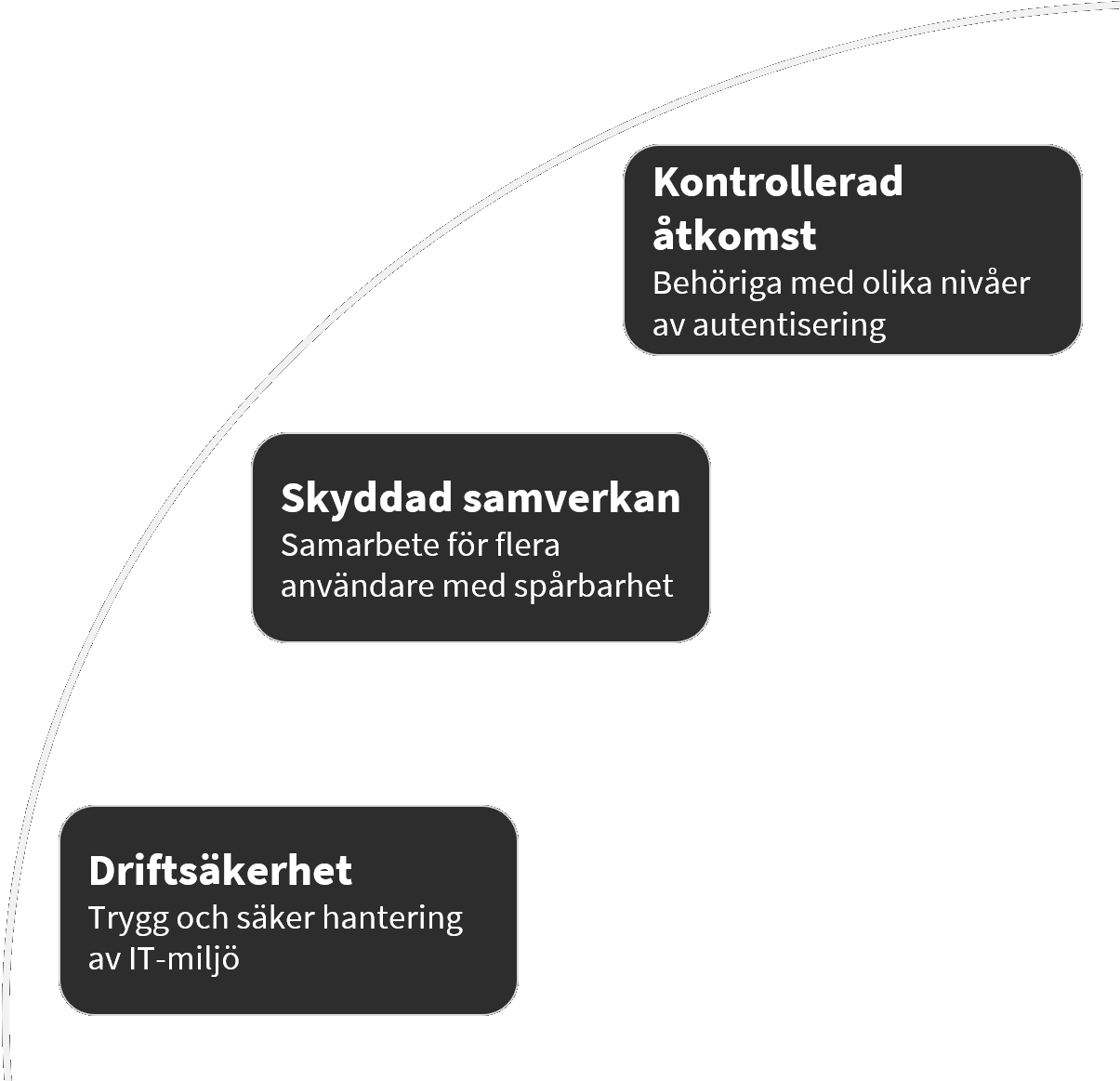 Säker användarmiljö med tunn klient, stark tvåfaktorsautentisering och rollbaserad behörighetsstyrning. Ger kontrollerad och spårbar åtkomst till system och data